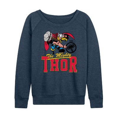 Marvel Thor - Thunder God - Women's French Terry Pullover Long Sleeve Shirt - Introducing our collection of officially licensed Marvel graphic apparel, where legendary superheroes and iconic moments from the Marvel Universe come to life on high-quality, comfortable clothing. Each design is carefully crafted with vibrant, detailed artwork featuring beloved characters like Spider-Man, Iron Man, Captain America, and the Avengers. From bold graphic tees to stylish hoodies and accessories, our apparel celebrates the thrilling world of Marvel with cutting-edge prints, premium fabrics, and a perfect fit for fans of all ages.