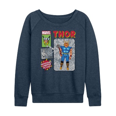 Marvel Thor - Thunder God - Women's French Terry Pullover Long Sleeve Shirt - Introducing our collection of officially licensed Marvel graphic apparel, where legendary superheroes and iconic moments from the Marvel Universe come to life on high-quality, comfortable clothing. Each design is carefully crafted with vibrant, detailed artwork featuring beloved characters like Spider-Man, Iron Man, Captain America, and the Avengers. From bold graphic tees to stylish hoodies and accessories, our apparel celebrates the thrilling world of Marvel with cutting-edge prints, premium fabrics, and a perfect fit for fans of all ages.