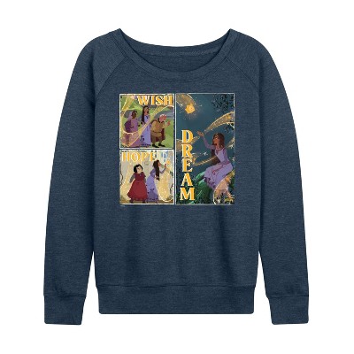 Women's Marvel Thunderbolts Grid Lightweight French Terry Wide Neck Long Sleeve Graphic Shirt - Heather Indigo - Medium
