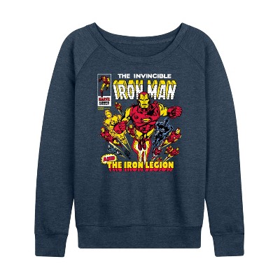Women's - Marvel - Iron Man Tony Stark Armor Specs Lightweight French Terry Wide Neck Long Sleeve Graphic Shirt