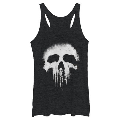 You don't have to be Eddie Brock to start rocking the Marvel Venom Logo Women's Racerback Tank Top. A lightly distressed print shapes the Venom logo on the front of this awesome women's relaxed-fit Venom tank top.