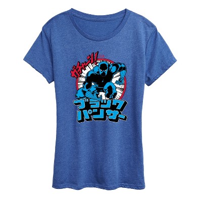 Women's Marvel Black Panther Wakanda Forever Sticker Short Sleeve Graphic T-Shirt - Heather Royal Blue - 1X
