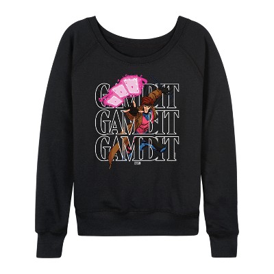 Women's - Marvel - X-Men Gambit Space Lightweight French Terry Wide Neck Long Sleeve Graphic Shirt