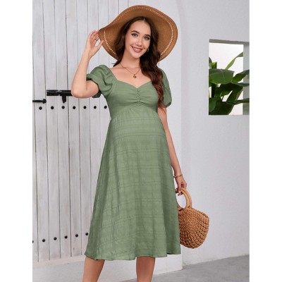 Women's Maternity Dress Short Sleeve Square Neck A Line Dress Tie Backless Ruffle Trim Solid Flared Dresses Army Green XX-Large