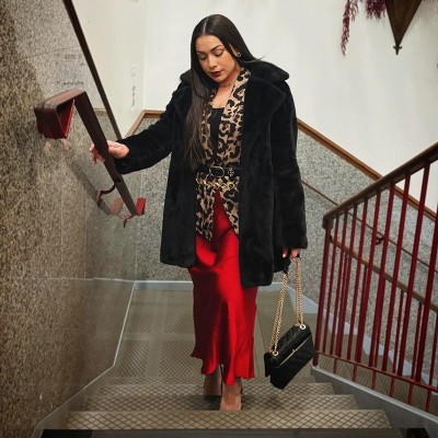 Something I didn’t realize when purchasing this, was it is a satin skirt. Not bad or anything, I just wasn’t expecting satin. It’s a decent skirt, really thin satin material - not see through though (I got black) so that’s good:) I’m a large and it fits true to size, almost goes to my ankles and I’m 5’3.