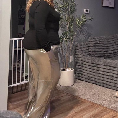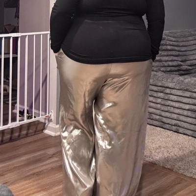Add a touch of shine to your ensemble with these Metallic Foil Pull-On Pants from A New Day™. Made from 100% polyester with a striking foil finish, these woven pants bring effortless sparkle to your everyday looks. Designed with a low-rise waist and a full elastic waistband, they deliver a comfortable, stay-put fit, and the casual fit and straight-leg silhouette allow easy movement.