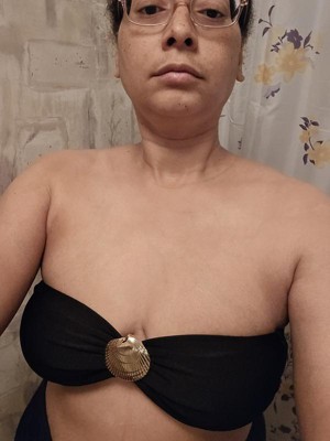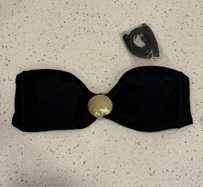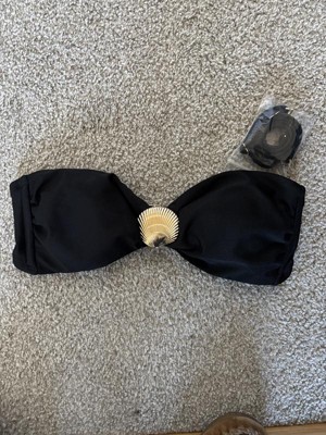Women's Metallic Shell Hardware Bandeau Bikini Top - Shade & Shore™ Black S is super cute and true to size. I love how it comes with detachable straps in case you want to use those. The shell in the center is a great addition, but it's not in the way like they sometimes can be.
