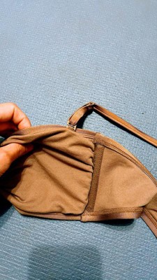 I had such high hopes for this when i got it. I was super excited for a "strapless" bikini top. The shell in the middle is way too heavy for smaller chested females. The top falls right down with the weight of the shell. I wish it was easier to remove the shell, but its on there for good. It looks like it's literally hanging by a string, but i cut that to try and remove the shell and save the top, but it didn't work. I'm probably going to donate it since i took it apart.