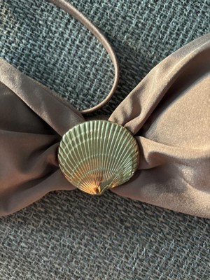 I’m in love with this bandeau top! The fabric is high-quality, and the brown color is so flattering and chic. The cut is perfect, comfortable yet flattering, and the cute metallic shell detail adds a stylish touch. It’s such a gorgeous piece that elevates any swimwear look!