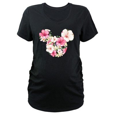 Women's Mickey & Friends Floral Wreath Maternity T-Shirt - Black - Small