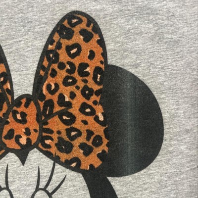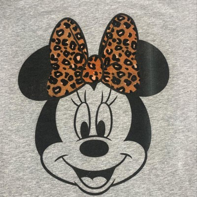 Women's Mickey & Friends Mickey & Minnie Mouse Cheetah Print Bow Scoop Neck - 1 of 3