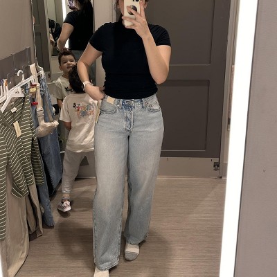 I have never found a pair of jeans that fits my body this well. With even expensive brands like Levi’s and Abercrombie, there’s always excess fabric at the crease where my torso meets my legs but these sit completely flush in that area with no weird bagginess at all. I love the button fly because it makes the jean feel structured, snug, and secure. A jean that has a button fly feels more elevated than a jean with a zipper fly. The straight wide leg is perfect and on trend. I am 5’2” and got the short inseam. They hit just below my ankle with a slight wrinkle, which was exactly what I wanted and is also on trend. Critiques: The back pockets are a bit large and sit low, which isn’t particularly flattering on anyone. I also wish these were made with a more substantial, traditional denim; I’d happily pay more for that upgrade. Lastly, if better washes were available, I’d buy multiple pairs without hesitation. Dark Wash - Feels flat with no personality since it’s one solid color. Adding distressing would create contrast and depth like the “washed black” jean. Light Wash - perfect. Medium Wash - Love the concept of mixing different denim tones, but the placement creates an odd illusion that makes the legs look off. I’d keep the idea but use larger, more balanced blocks throughout the entire jean. Medium Wash Destroy - Love this color, but big holes aren’t very on trend right now. Smaller, more natural-looking distressing that mimics wear over time would be ideal. Vintage Dark Wash - Not my favorite. The yellow tone makes it look dirty. That said, I know some people like this, so it may not need to change. Washed Black - perfect. It avoids the too-formal look of a solid black jean. The lighter fading at the thighs, knees, and crease marks adds great contrast.