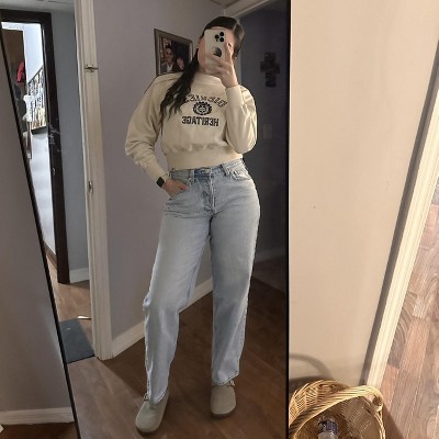 Got these a size up bc I like my pants to fit lower rise. I love these jeans so much, one of my favorite pairs I’ve gotten in a while. If you prefer a wider leg look I’d recommend sizing up once or twice. I wasn’t sure how to style them at first because they didn’t look great with black clothes, but they genuinely look good w/ other colors especially greys and whites.
