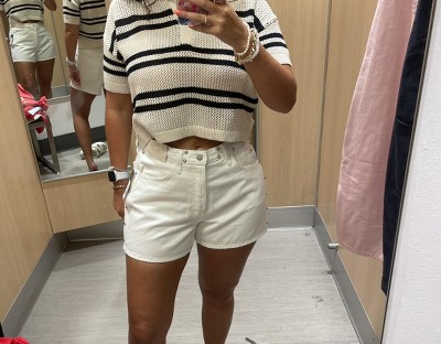 I’m normally a 6-8, or M/L in denim shorts, but was swimming in the mediums. Usually Wild Fable runs small for me because it’s Juniors sizing, so I often have to get larges. In these shorts I needed a Small! I would recommend you try it on in the store if you can. You may want to size down. For reference I am 5’2”, 117 lbs, waist 28”, hips 38”, and in the picture I’m wearing the M. I ordered a S online and it’s perfect! I feel like these are totally the kind of shorts Mary Kate & Ashley would be rocking in the late 90s/early 00s, along with a ringer tee, some round sunglasses, and chunky shoes. IYKYK =)