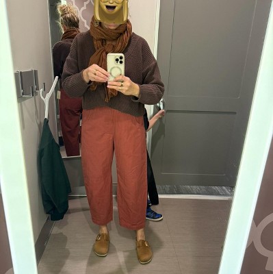 Love these. Comfort of a stretchy waistband without looking like a slouch! I’m 5’9” so they’re a little extra cropped on me, but most things are. Definitely run big. Target please make more colors!