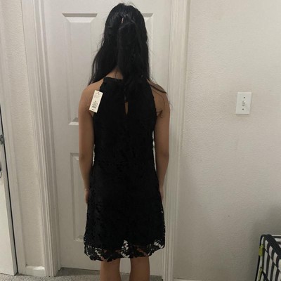 Elevate your wardrobe for casual get-togethers or date nights with this Mini Scalloped Lace Dress from A New Day™. Tailored in a mini length, this sleeveless halter dress features allover lace detailing with a scalloped hem for an elegant look. The soft recycled polyester fabric offers all-day comfort, while the keyhole back buckle closure ensures ease of wear. Complete the look with your choice of footwear and accessories.