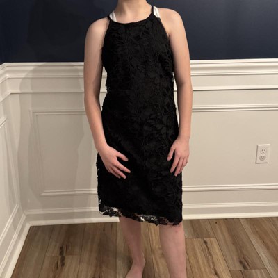 [This review was collected as part of a promotion.] Yet another beautiful dress from A New Day and Target! This dress hits above the knees and is a beautiful lace overlay on top of a satin slip dress. The high neck is so pretty! I ordered this dress in a size small, which is my typical size and I felt it runs a little too big. As you can see in the picture, the arm holes are too big and the chest area is overall too big. The cut is beautiful though. I received an incentive to write this review.