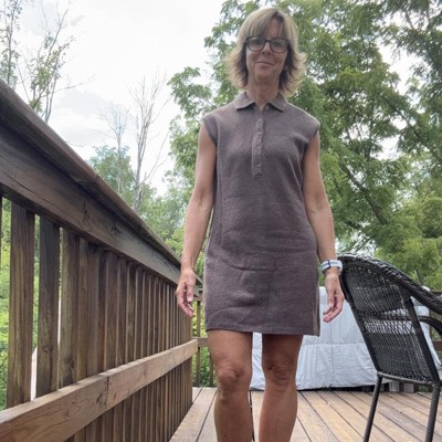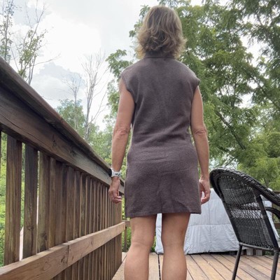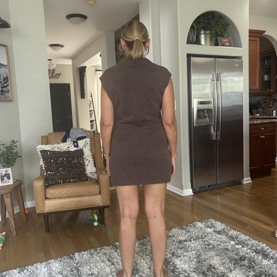 [This review was collected as part of a promotion.] This size XS sleeveless mini sweater dress fits my 5’3 smaller frame pretty well! My measurements at the time of this review are C31 W27 H34 and weight around 120lbs. The material was soft and very comfortable. It is a bit heavy, it may be warm for a hot summer day. I liked the buttons, although small, they were easy to open and close. The collar is a cute addition, making it easy to dress up or down. The brown color reminds me of fall and would look cute paired with a jean jacket! I received an incentive to write this review.