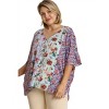 Pair this with your favorite jeans and slides for your next girls night out. Introducing the Umgee Mixed Floral Print Top in Sky, a bold and fun addition to your wardrobe. This plus-size blouse features elbow sleeves and a flattering V-neckline, perfect for styling with jeans or leggings. Crafted from 100% Rayon, this lightweight top boasts side slits and an oversized silhouette for added comfort. Origin: Imported. Closure: Pull-on style. Care: Hand wash cold and line dry for best results.