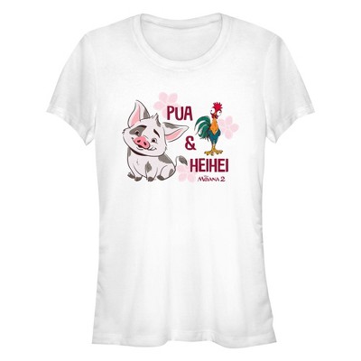 Join Moana and Maui once again as Moana answers the call from her ancestors to journey through the dangerous seas of Oceania to connect her people! Get in on the adventure with all new officially licensed apparel for the whole family from Moana 2! This Women's Moana 2 Pua & Heihei Racerback Tank Top features an adorable graphic of the funniest pets Heihei and Pua with pink flowers printed behind them and their names written across the front.