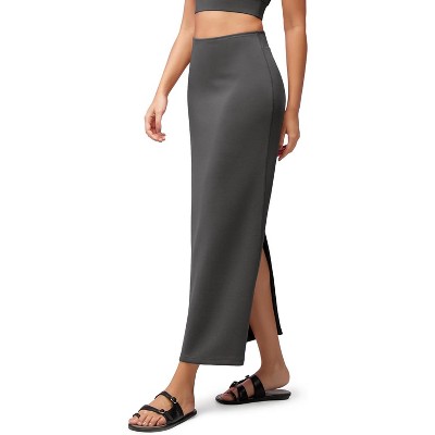 Women's Modal Maxi Skirt - High Waist Back Slit Long Pencil Skirt for Casual Comfort Grey Blue Grey Blue Medium