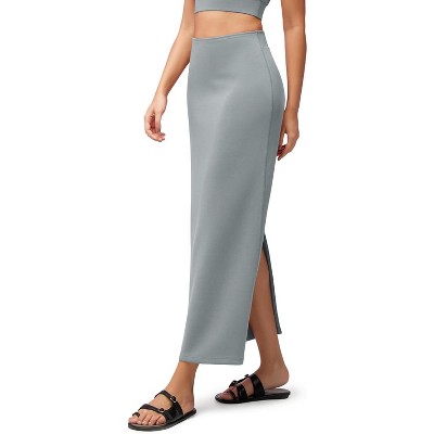 Women's Modal Maxi Skirt - High Waist Back Slit Long Pencil Skirt for Casual Comfort Light Gray Light Gray Medium