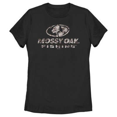 What started as a camouflage brand, has become a lifestyle! Go outside and connect with nature while you enjoy all your favorite outdoor activities like hunting, fishing, and more with officially licensed apparel for the whole family from Mossy Oak! This Women's Mossy Oak Black Water Bold Logo Graphic T-Shirt features the classic brand logo in a black water camo pattern, along with "Mossy Oak Fishing" printed across the front. Represent your favorite outdoor brand on your next adventure today!