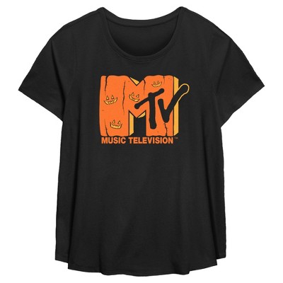 • Strut your stuff with this stylish new women's plus size scoop hem t-shirt that is perfect for every occasion! Featuring the classic MTV logo filled with stars on a blue background.