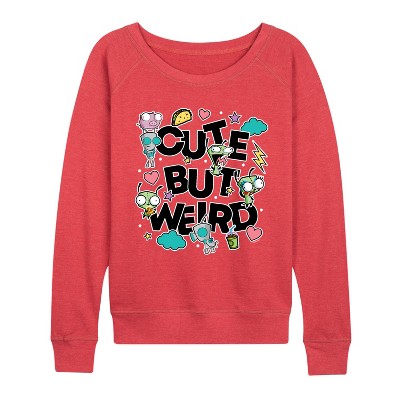 Women's MTV MTV Flash Tattoos Lightweight French Terry Wide Neck Long Sleeve Graphic Shirt - Heather Red - Medium