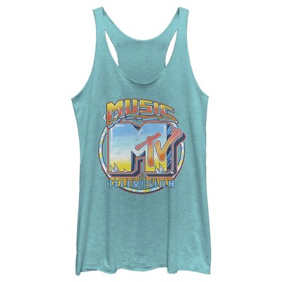 Women's MTV Shimmery Logo Racerback Tank Top - Tahiti Blue - 2X Large