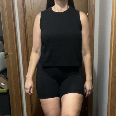 [This review was collected as part of a promotion.] This is the muscle tank top from Universal Thread. I got this is black in a size XS. I am 5’3” 115 pounds and this fit perfectly. It is a shorter length, hits just below the waist so it is great with shorts or jeans where you don’t want to tuck it in and you also don’t want to show any skin! The fabric is lightweight but sturdy enough to hold some shape. This shirt comes in several colors and at such a good price, I think I need them all! I received an incentive to write this review.