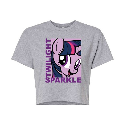 Women's My Little Pony Character Block Pinkie Pie Cropped Graphic T-Shirt - Heather Grey - Large