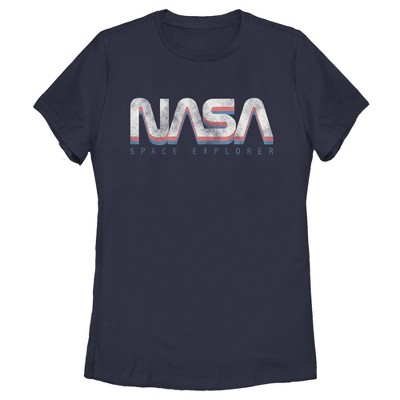 Women's NASA Outline Simple Logo T-Shirt - Navy Blue - Large