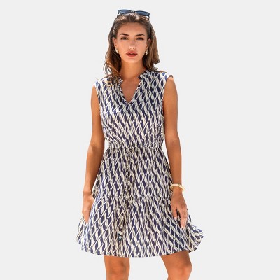 Product Name: Women's Nautical Striped Sleeveless Button-Down Dress - Cupshe