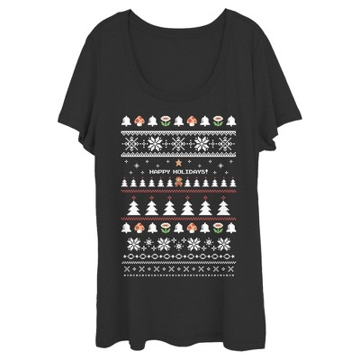 Get in the holiday mood with this Nintendo Ugly Mario Holiday Sweater Women's Scoop Neck! Pop open an issue of Nintendo Power, enter that cheat code, enjoy infinite lives, grab a mug of cocoa, and look great doing it!