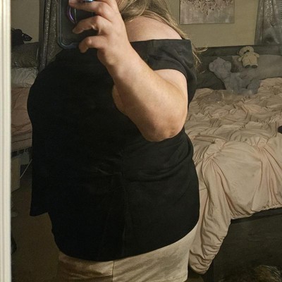 [This review was collected as part of a promotion.] I wanted to absolutely love this shirt, but it wasn’t quite a right fit for me. I’m pictured here wearing a size extra large and this definitely did not run true to size. It was on the smaller side so I recommend sizing up one the office shoulder look wow super untraded would not be great for work. This is more of a going out or a date night type shirt this shirt I would’ve needed to size up one maybe two there was absolutely no stretch in it and it is more cropped fit. I received an incentive to write this review.