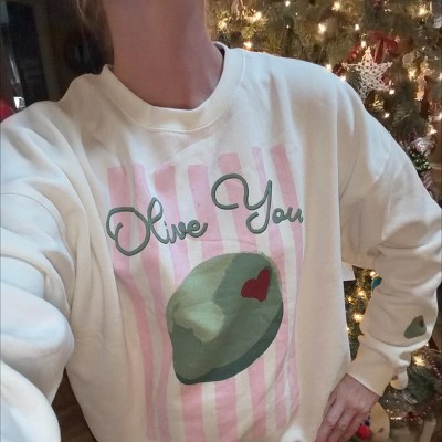 Women's Olive Fleece Graphic Pullover Sweatshirt - Cream - 2 of 3Women's Olive Fleece Graphic Pullover Sweatshirt - Cream - 3 of 3