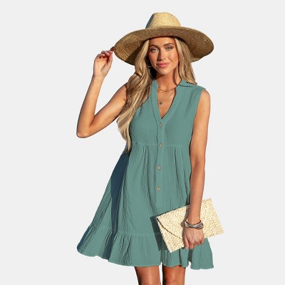 Product Name: Women's Olive Green Button Down Sleeveless Maxi Cover Up Dress with Side Slit - Cupshe