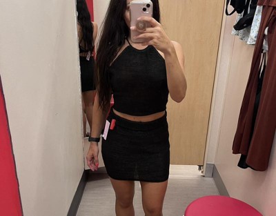 Black sweater tank from Wild Fable™ with a high crew neckline and ribbed waist. Tailored in a regular fit with a cropped-cut silhouette. Ventilating design with a lace-up back featuring crisscross straps and an adjustable tie closure completes the design.