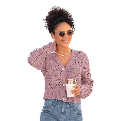 Women's Open Front Knit Cardigan - LASCANA - Pink Solid 12/14