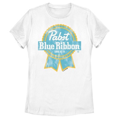 Women's Pabst Rainbow Blue Ribbon Logo T-Shirt - White - Small