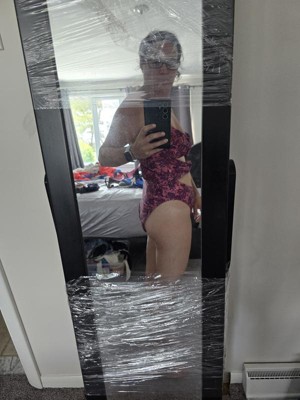 I normally never leave a bad review, especially with swimsuits bc you should be under the water with them 😂 this was a no for me. What an awful design, would leave terrible tan lines. What is this that runs across the stomach. I did like the print. Runs large, not flattering at all.