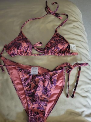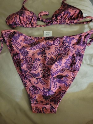 Women's Paisley Print Low-Rise High Leg Cheeky Side-Tie Bikini Bottom - Wild Fable™ Pink/Purple XXS