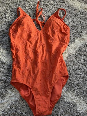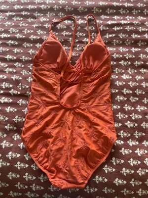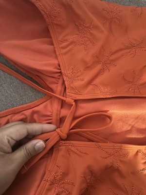Women's Palm Print Embroidered Plunge Neck Full Coverage One Piece Swimsuit - Shade & Shore™ Orange - 2 of 3Women's Palm Print Embroidered Plunge Neck Full Coverage One Piece Swimsuit - Shade & Shore™ Orange - 3 of 3
