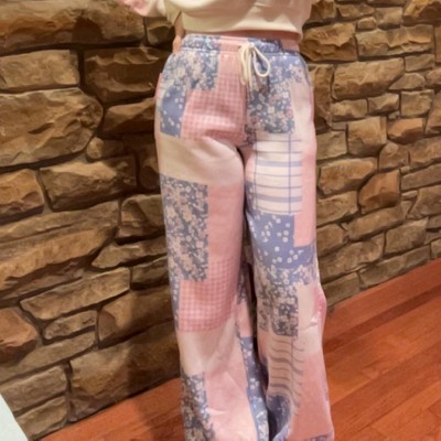 Women's Patchwork Wide Leg Graphic Jogger Pants - Pastels