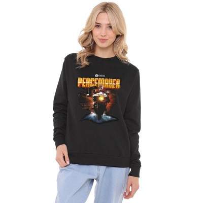 Women's Peacemaker Season Two Chrome Helmet Logo Crew Sweatshirt, Black, Small