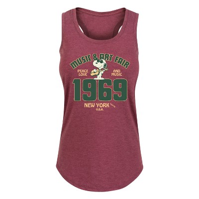 Peanuts - 70s Snoopy - Women's Racerback Tank Top - From the best-loved comic strip in history comes officially licensed PEANUTS apparel for fans everywhere. Show your love for Charlie Brown, Snoopy, Woodstock, Lucy, Linus, Pigpen and the whole gang. Copyright Peanuts.