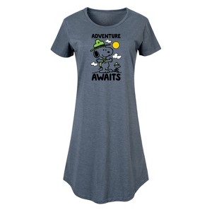 Women's Peanuts Advenutre Awaits Graphic T-shirt Dress - Heather Blue - Medium - 1 of 4