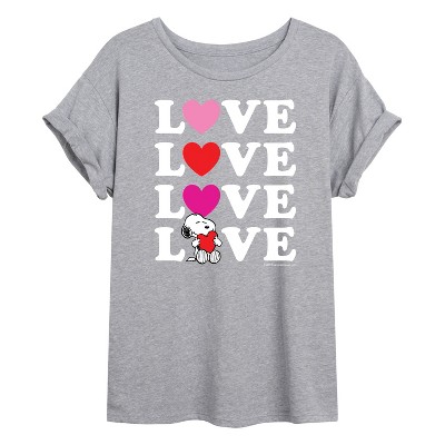 Peanuts - Be Mine Snoopy - Juniors Oversized Graphic T-Shirt - From the best-loved comic strip in history comes officially licensed PEANUTS apparel for fans everywhere. Show your love for Charlie Brown, Snoopy, Woodstock, Lucy, Linus, Pigpen and the whole gang. Copyright Peanuts.