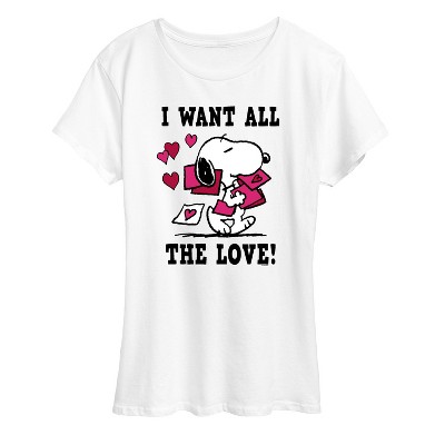 Peanuts - Be My Valentine - Women's Short Sleeve Graphic T-Shirt - From the best-loved comic strip in history comes officially licensed PEANUTS apparel for fans everywhere. Show your love for Charlie Brown, Snoopy, Woodstock, Lucy, Linus, Pigpen and the whole gang. Copyright Peanuts.